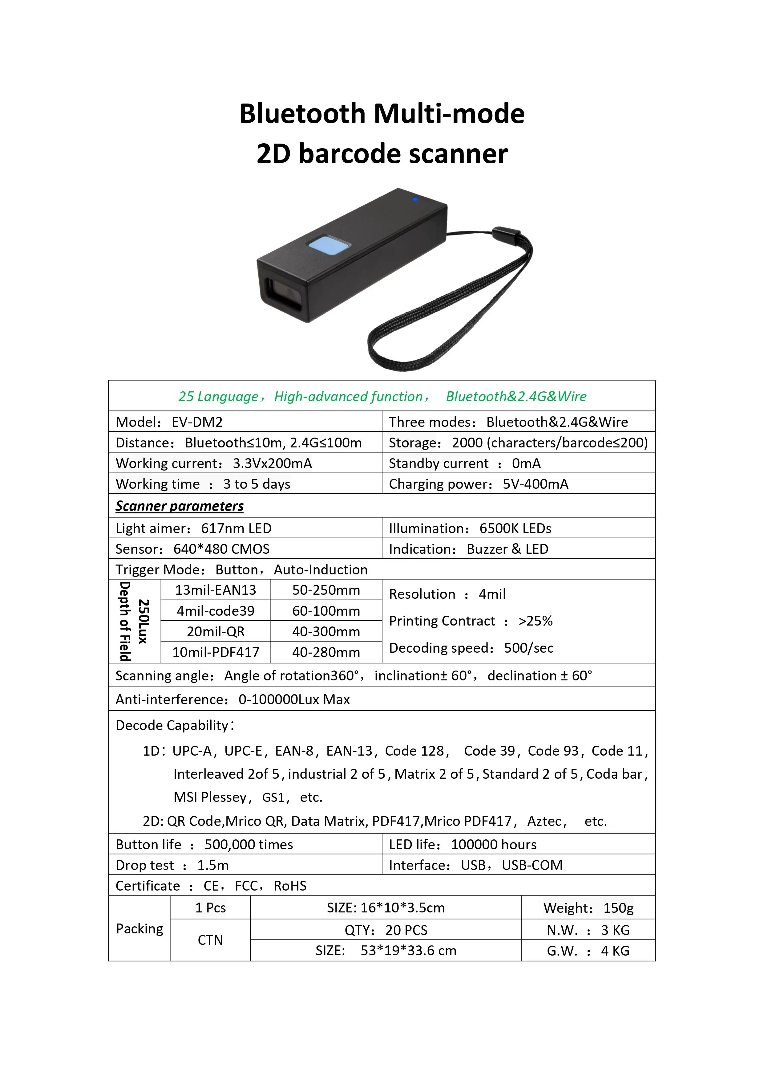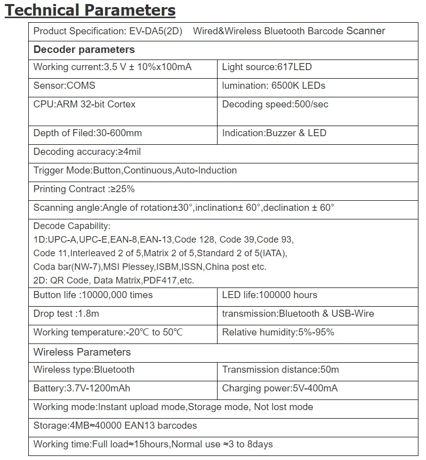 Shenzhen Dalang Electronic Technology Co., Ltd. является одним из ведущих китайских профессиональных производителей сканеров штрих-кодов. EVAWGIB специализируется на технологии считывания штрих-кода и имеет более чем для детей 10 лет опыта работы в Сканирование штрих-кодов технологий.