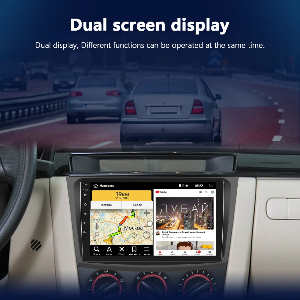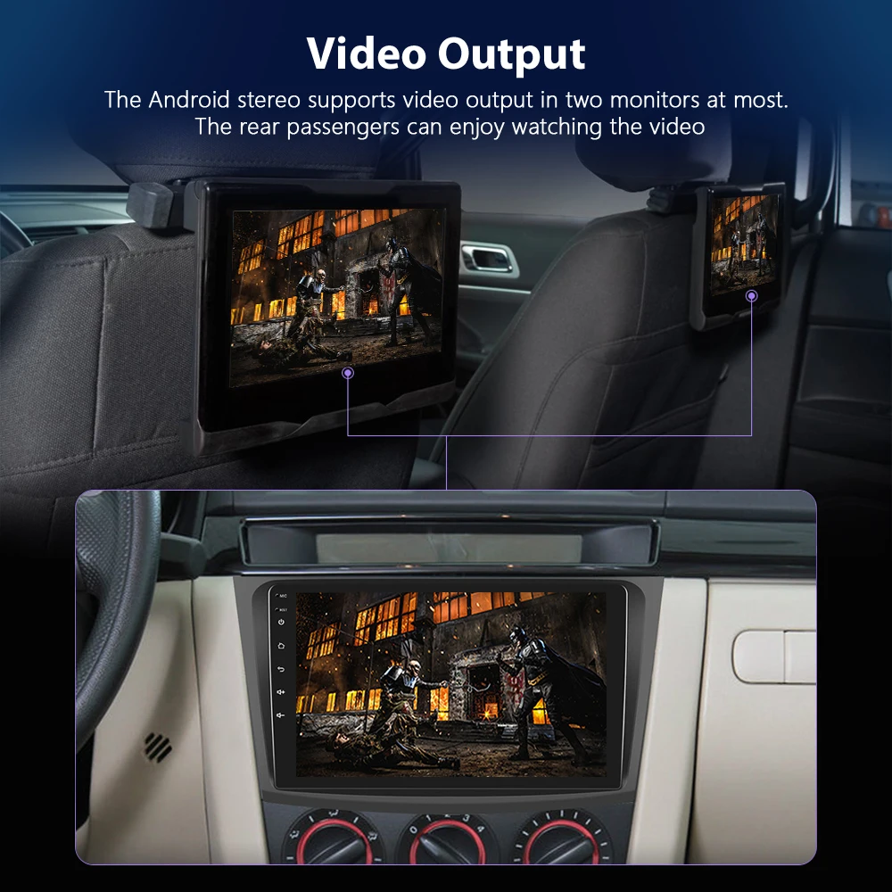 Android стерео поддерживает видео выход в двух мониторах. Задние пассажиры могут наслаждаться просмотром видео
