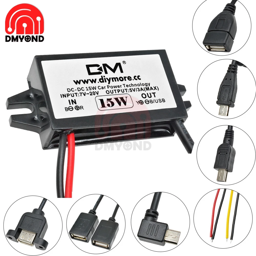 DC-DC от 12 В до 5 В пост 3A 15 Вт автомобильный Зарядное устройство зарядки Мощность конвертер USB понижающий Питание Выход адаптер медленном огне автоматической защиты