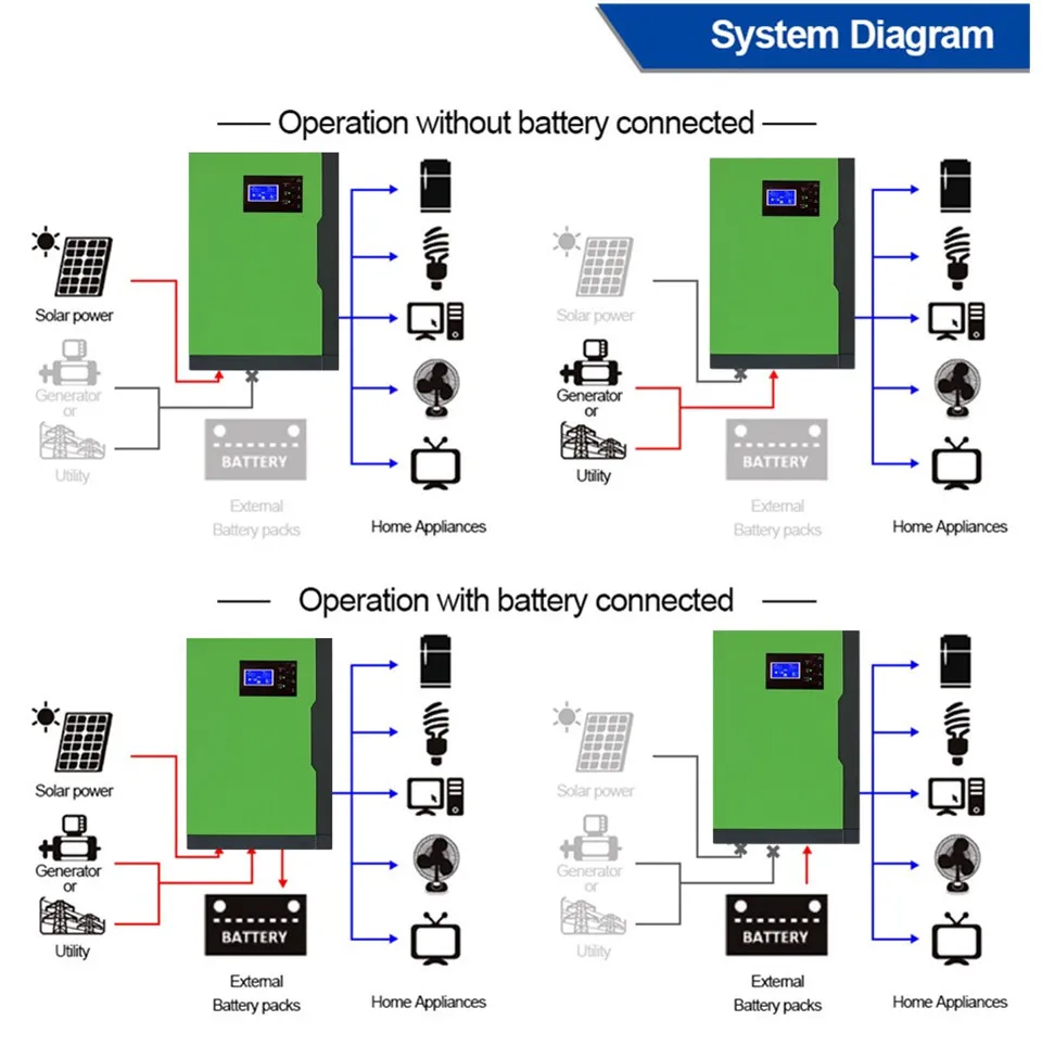 5.5KW MPPT Гибридный солнечный инвертор решетки чистая Синусоидальная волна инвертированная автономная солнечная система