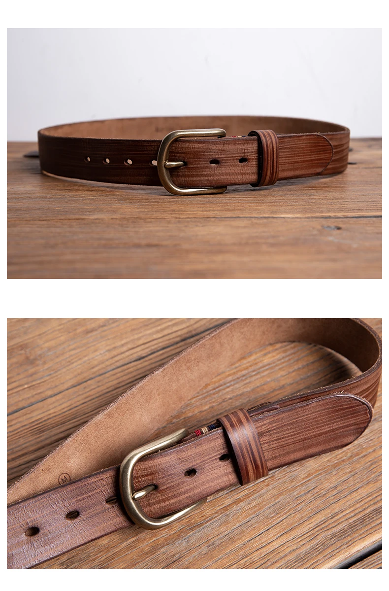 Мужской кожаный ремень ручной работы с натуральным лицевым покрытием, толстый кожаный ремень высокого качества с медной пряжкой, винтажные повседневные джинсы, персонализированный ремень