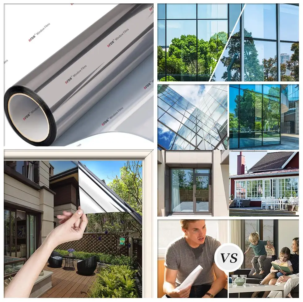 Внешнее стекло будет показывать зеркальный эффект в течение дня. И эта оконная пленка с зеркальным эффектом идеально подходит для защиты конфиденциальности в помещении в дневное время.