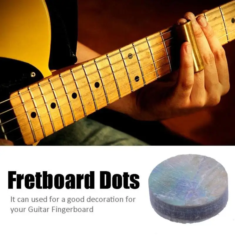 Изделие содержит 20 одинаковых маленьких точек, которые могут быть использованы для украшения вашей гитары, инкрустированы в разных положениях на грифе, чтобы помочь Вам легче отличить ладу.
