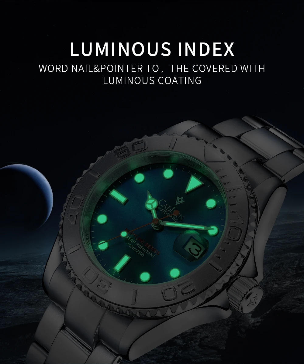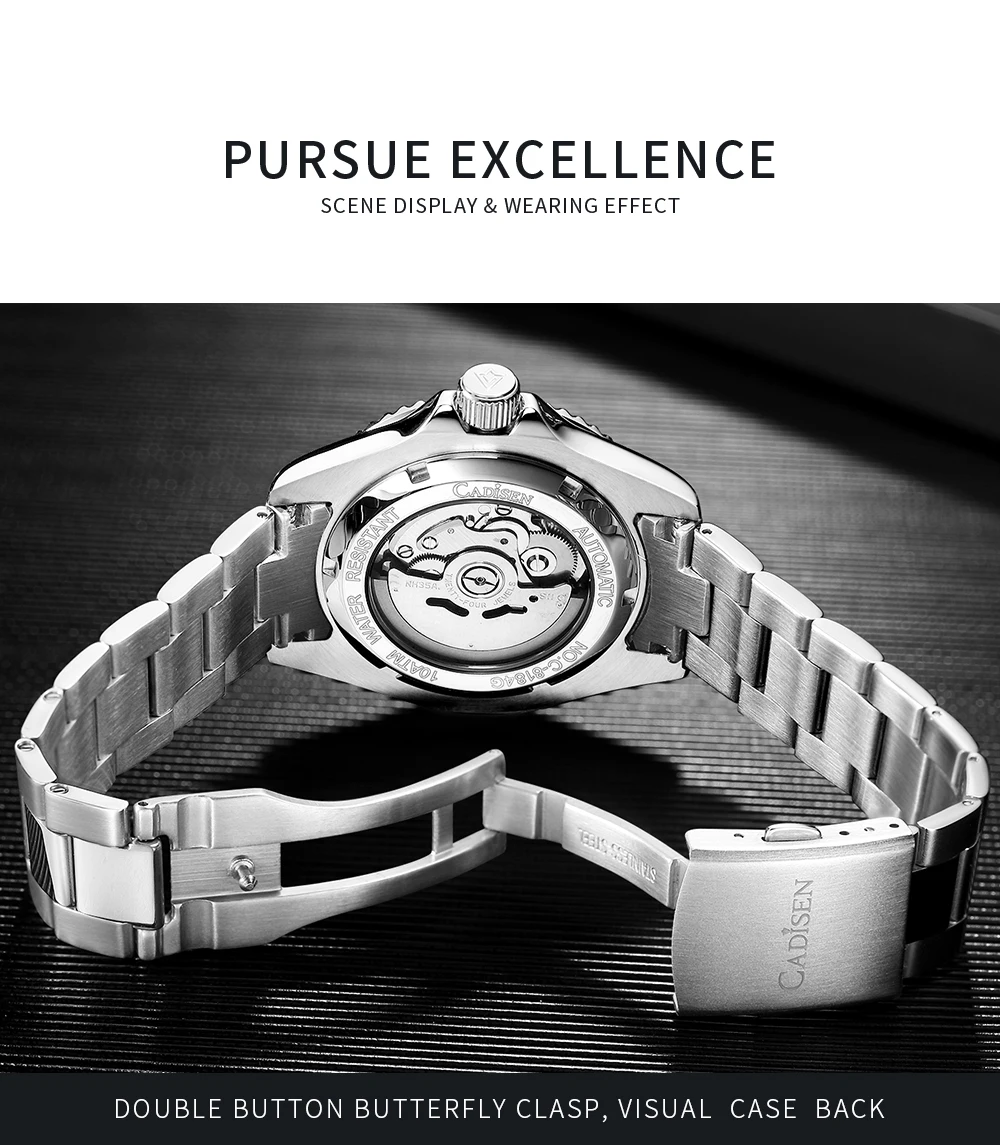 CADISEN C8184 Men's Watch Seiko-NH35A Automatic Mechanical Watches Men 100M Waterproof Wristwatch 40mm Sapphire Glass Dial Clock