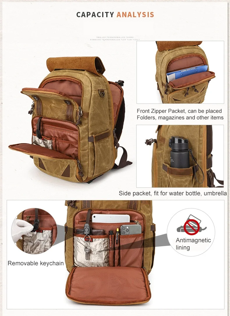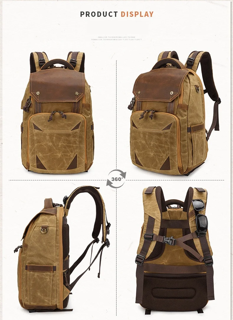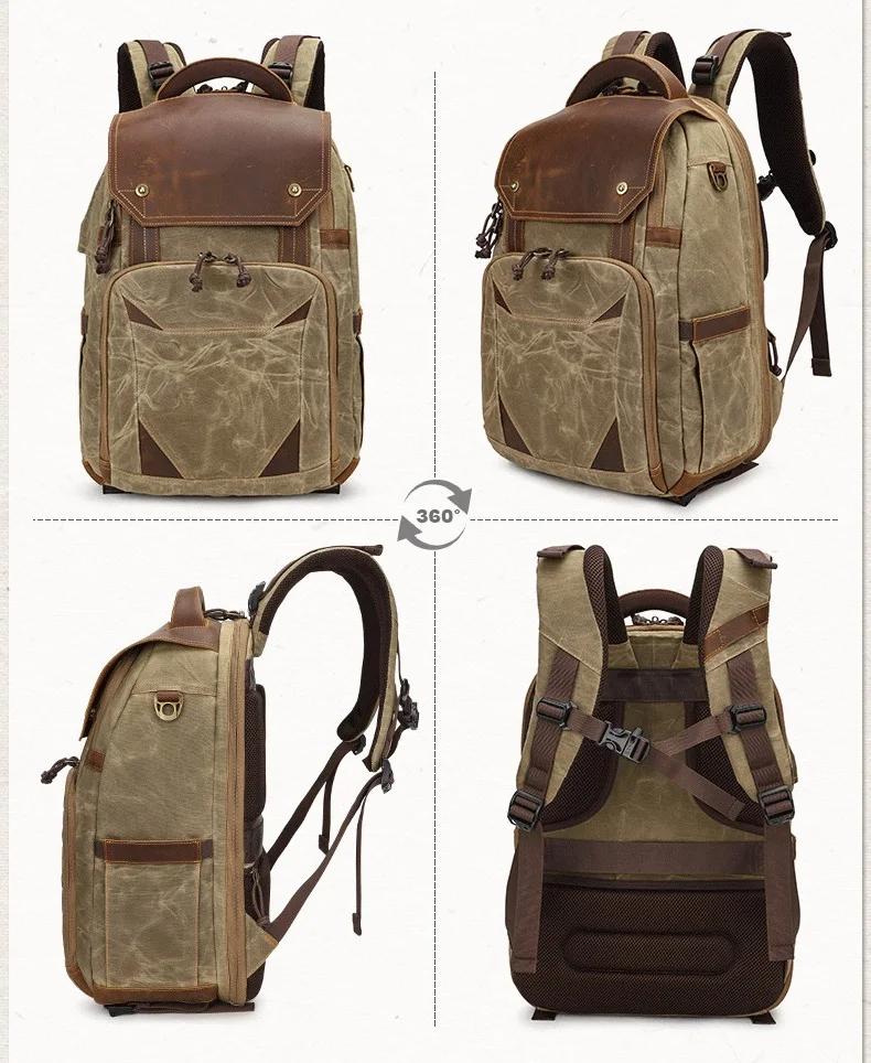 Batik Canvas Waterproof Trendy Photography Bag Outdoor Wear-resistant Large Camera Backpack Men for Nikon/Canon/ Sony/Fujifilm Max for 15.4inch Laptop