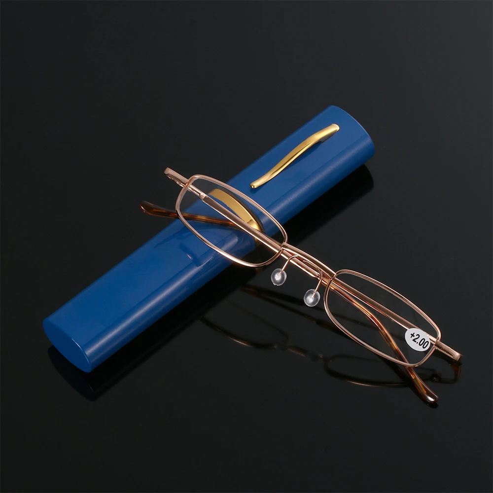 Унисекс, очки для чтения с ручкой, чехол-трубка, портативные пресбиопические очки, классический металлический чехол, пружинный шарнир, очки для зрения + 1,00 ~ + 4,00