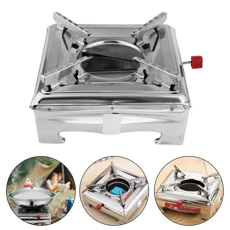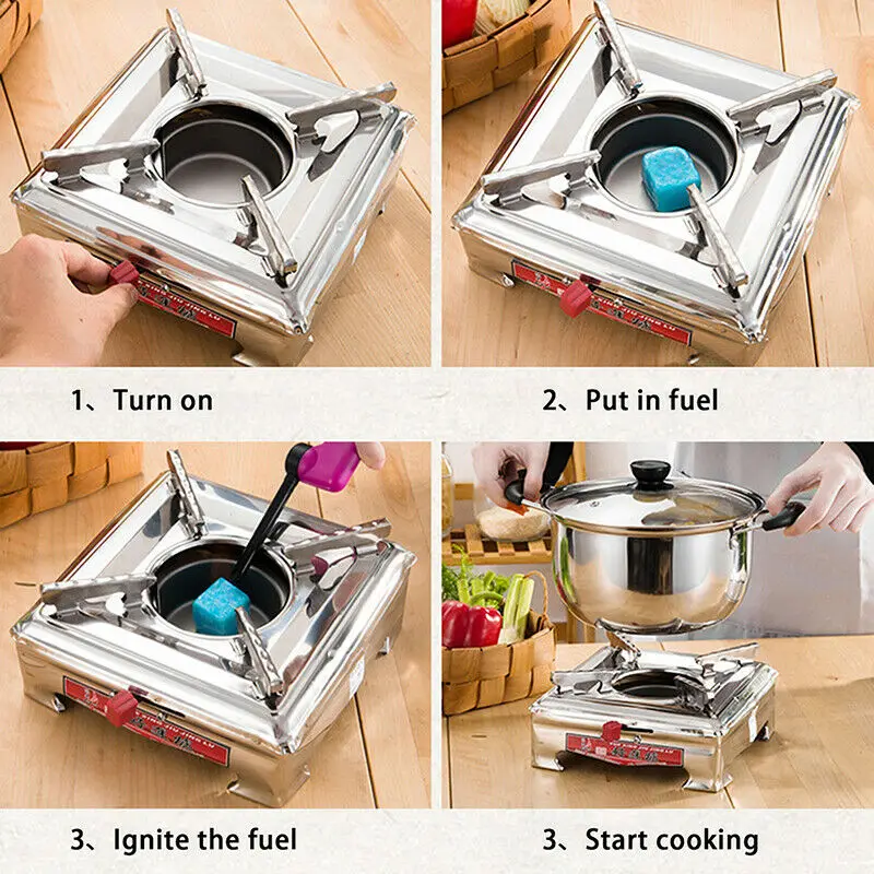 Устойчивый к коррозии, прочный материал из нержавеющей стали, квадратная форма, встроенная спиртовая плита, стабильная и тяжелая нагрузка, слайдер, легко регулировать огнестойкость, стабильная и фиксирующая стойка и Нескользящие опорные ножки, безопасно для использования, его можно использовать с твердым и жидким спиртом.