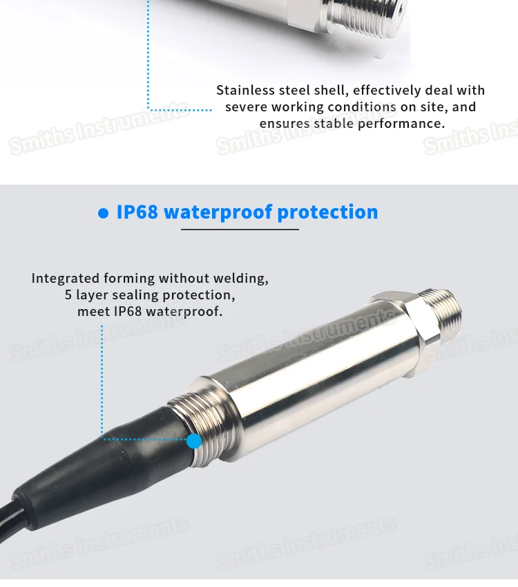Описание товара1>. ELLT200 передатчик уровня погружения (передатчик уровня статического давления) использует импортные Антикоррозийные мембранные чувствительные компоненты и помещает чип в корпус из нержавеющей стали. Верхняя стальная крышка выступает в качестве защитной сенсорной диафрагмы, а также позволяет воде плавно контактировать с диафрагмой.