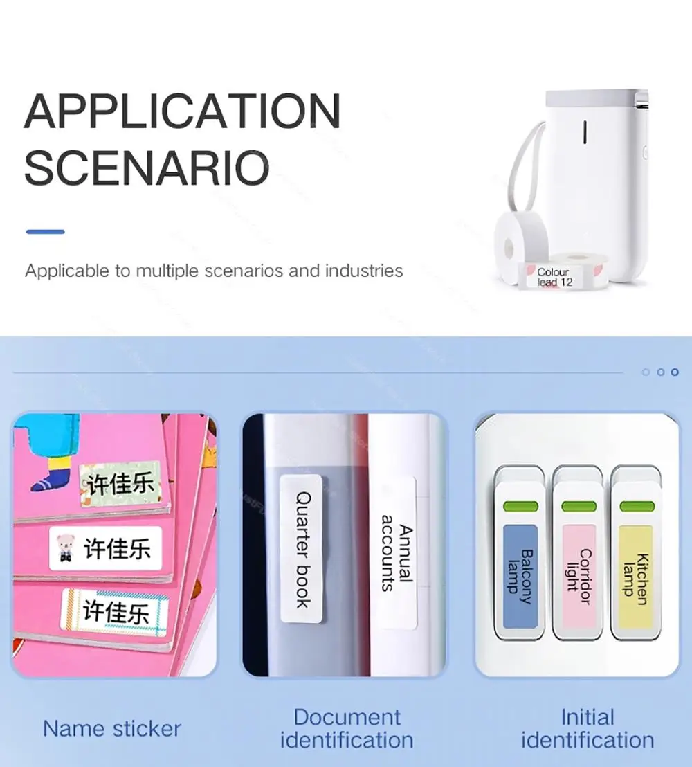 Широко используется в домашнем хранилище, офисе, супермаркете для печати этикеток, цены, веса, даты, имени и т. Д.