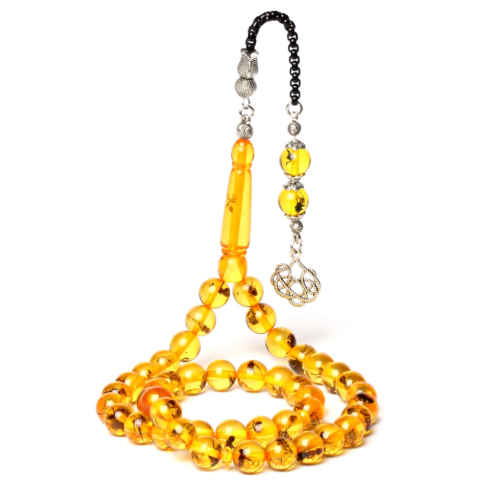 Тасбиг четки Удивительные Желтые насекомые янтарные бусины настоящие муравьи внутри 10 мм 51 сибха круглые бусины ручной работы молитва шарик