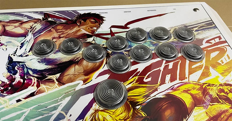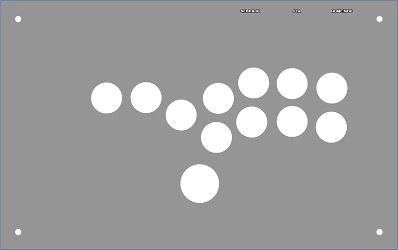 Превосходное качество hitbox имеет металлическую верхнюю и нижнюю панель. Топ Plexi уже создан для пользовательских художественных работ, все, что вам нужно сделать, это загрузить шаблон, применить искусство, получить его напечатано на Kinkos, и вырезать его. Нижняя панель имеет кусок акрила над металлом.