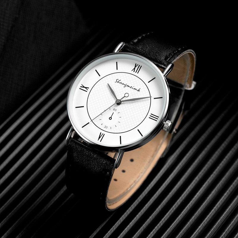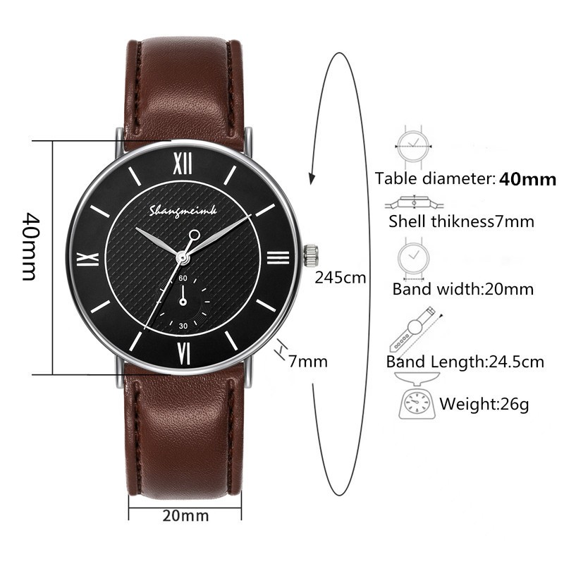 Спецификация (прибл.) Диаметр: 4 см Толщина: 0,8 см Длина ширина ремешка: 24,5 см Ширина ремешка: 2 см Чехол для часов: сплав Материал ремешка:Из искусственной кожиПосылка: