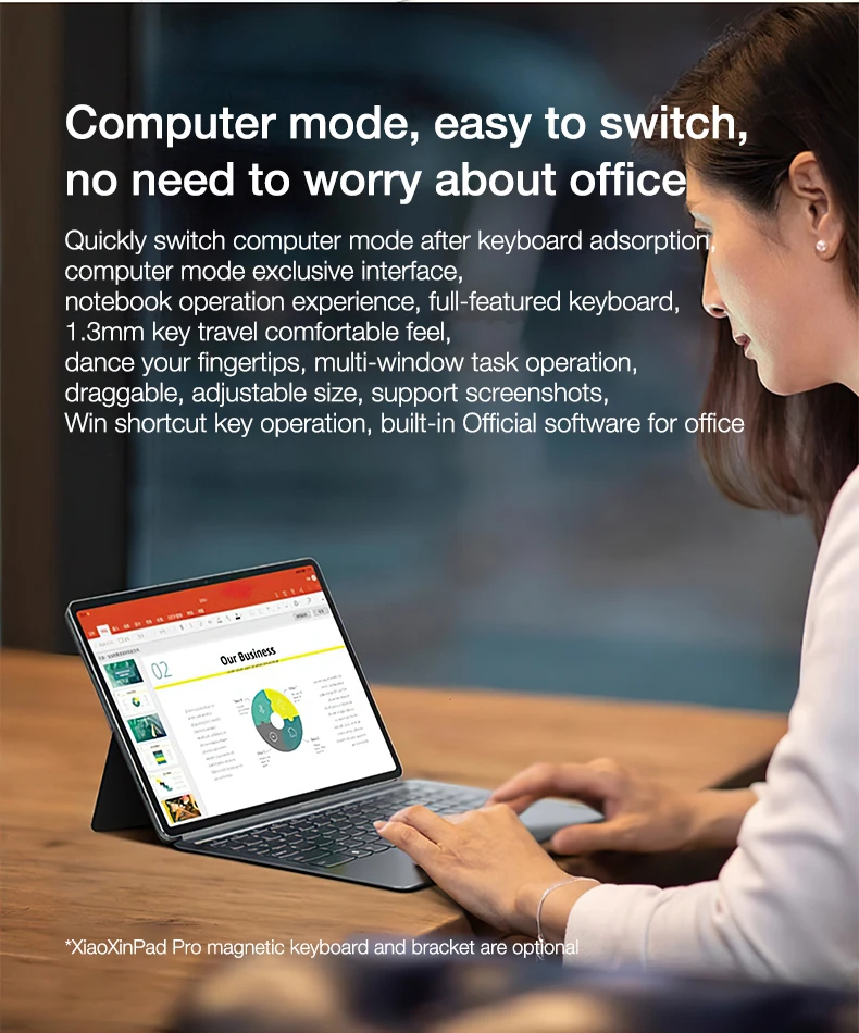Этот планшет обладает непревзойденной емкостью для работы на уровне ноутбука, благодаря дополнительной ультратонкой клавиатуре со встроенным трекпадом и клавишами быстрого доступа, для тактильного, быстрого и точного ввода текста. Заметки для набросков, красок или надписей, когда вдохновение ударяет с помощью дополнительного прецизионного пера Lenovo 2 с 4096 уровнями давления, обнаружением наклона и 200 часами времени использования пера на одной зарядке.