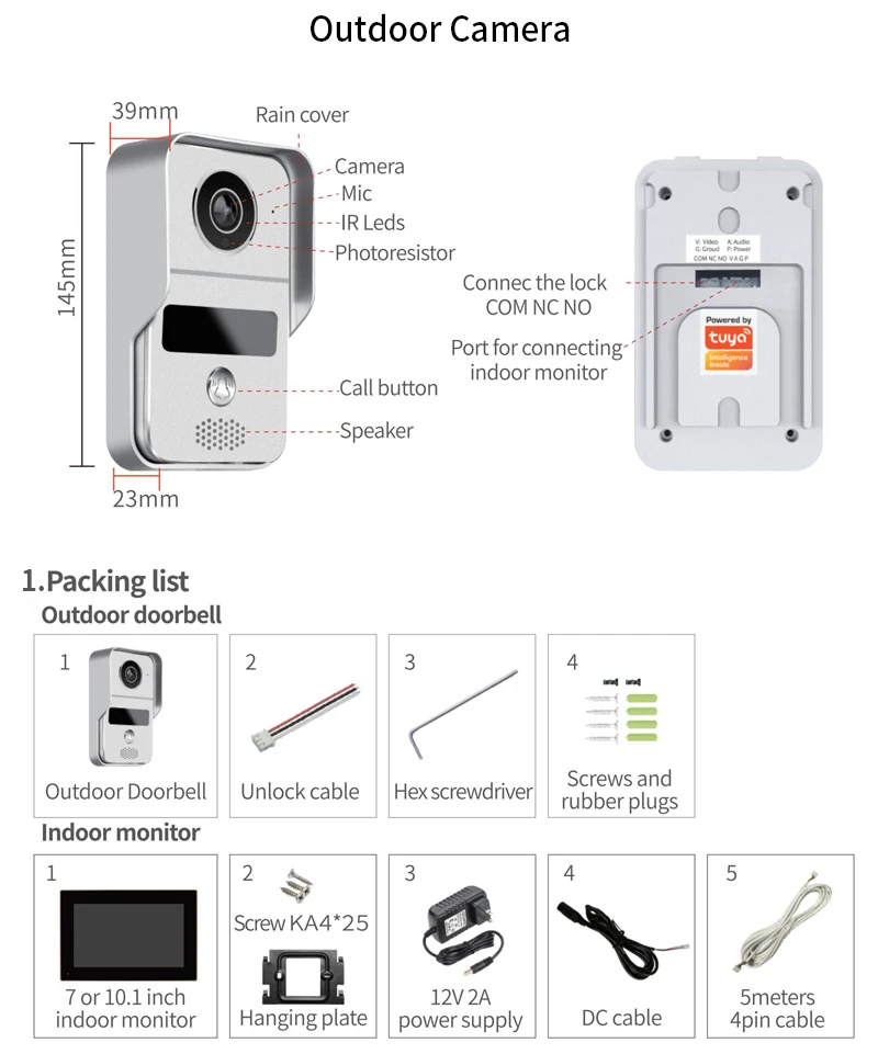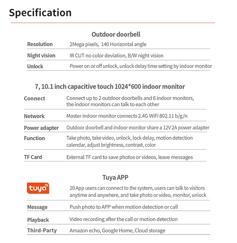 Tuya умный Wifi видео дверной звонок Домашний домофон телефон 1080P RFID беспроводной дверной Просмотр камера Интерком 7 дюймов экран запись движения
