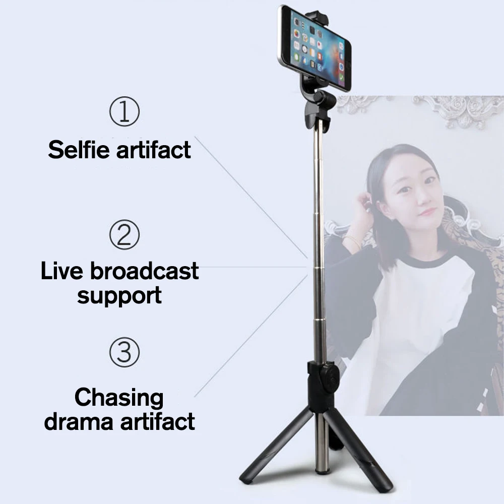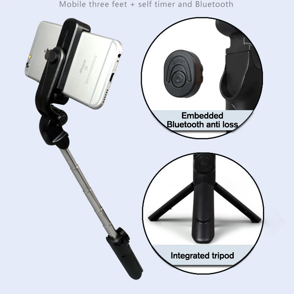 All-in-one design, mobile phone tripod + selfie stick + bluetooth, all-in-one design, only 18.5cm long and only 120g when folded