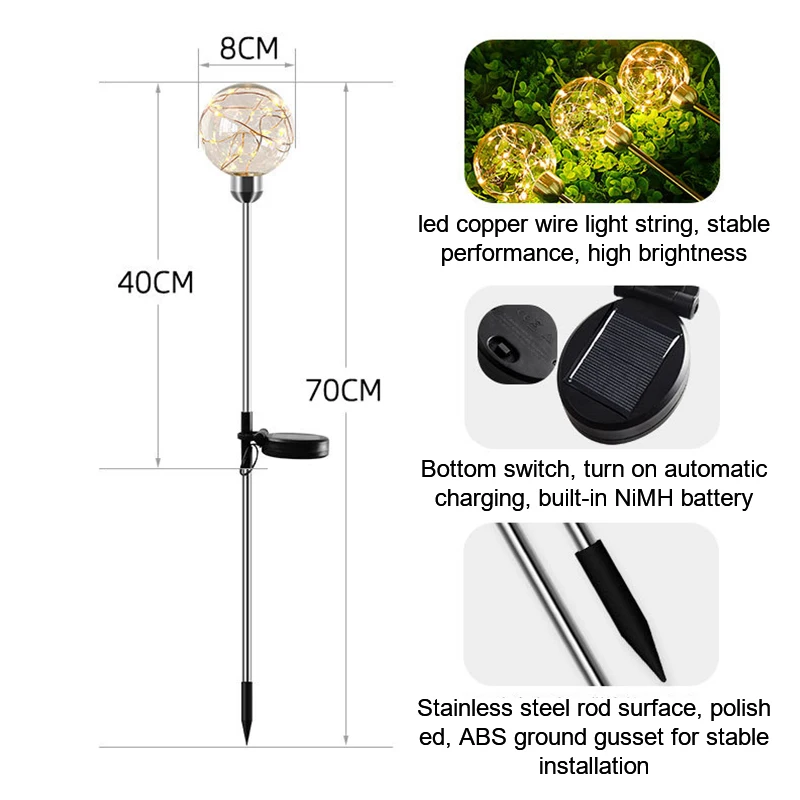 【Outdoor Decoration】This solar copper wire ball reed lamp is fashionable and practical. Widely used in all kinds of gardens, patios, swimming pools, driveways, barbecues, camping, parties, etc. Decoration for outdoor events such as weddings and festivals