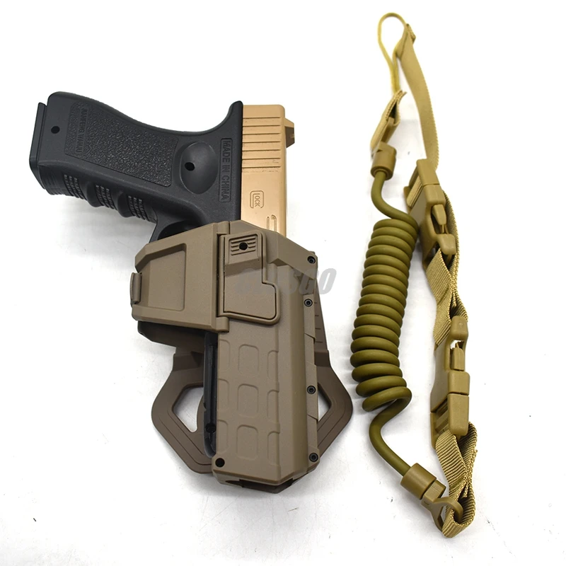Tactical Movable Gun Holster with Spring Lanyard for Glock 17 18 22 26 Pistols Waist Holster with Flashlight or Laser Mounted