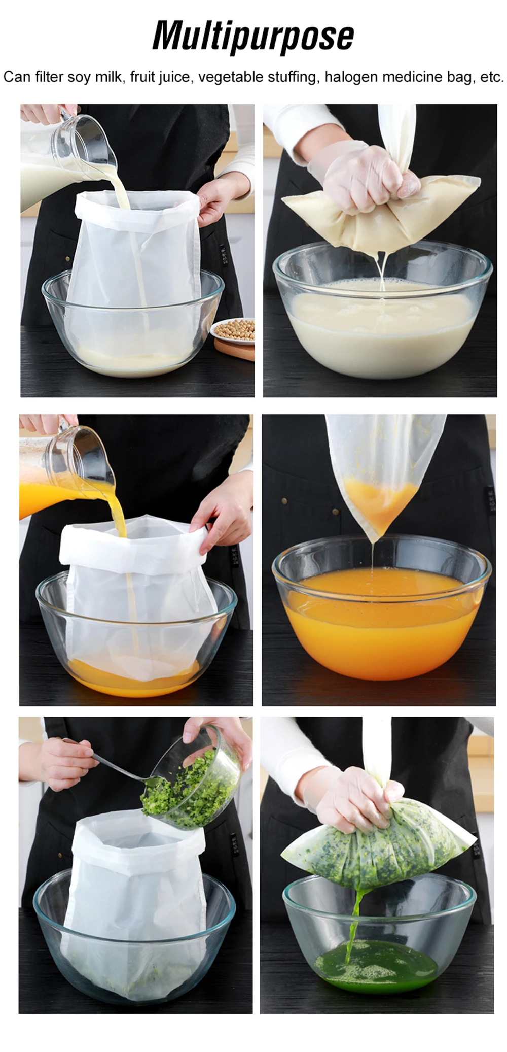 Nylon Filter Bag Soy Milk Wine Filter Net Tea Coffee Oil Filtration Strainer Mesh Food Reusable Filter Fabric Bags Kitchen Tools