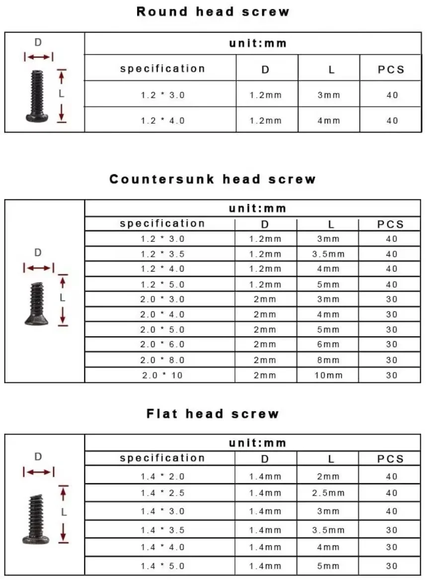 1 set 18 Types Mini screw DIY Kit