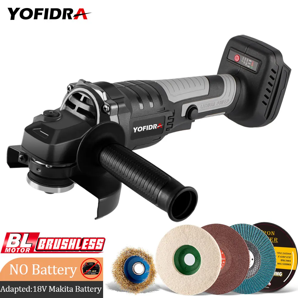 Yofidra 125MM Brushless Angle Grinder For Makita 18V Battery M14 3 Gears Metal Wood Cutting Polishing Derusting Power Tool