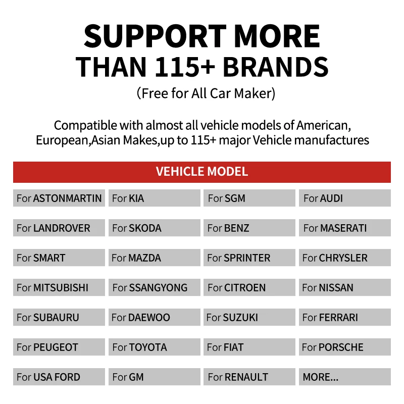 Support Cover Up to Over 115 Major Vehicle Manufacturers From America, Europe and Asia