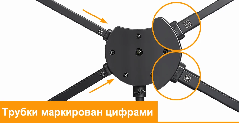 ■ Четыре алюминиевые трубки, обозначенные цифрами, помогают установить и прочно поддерживать плоский проекционный экран.