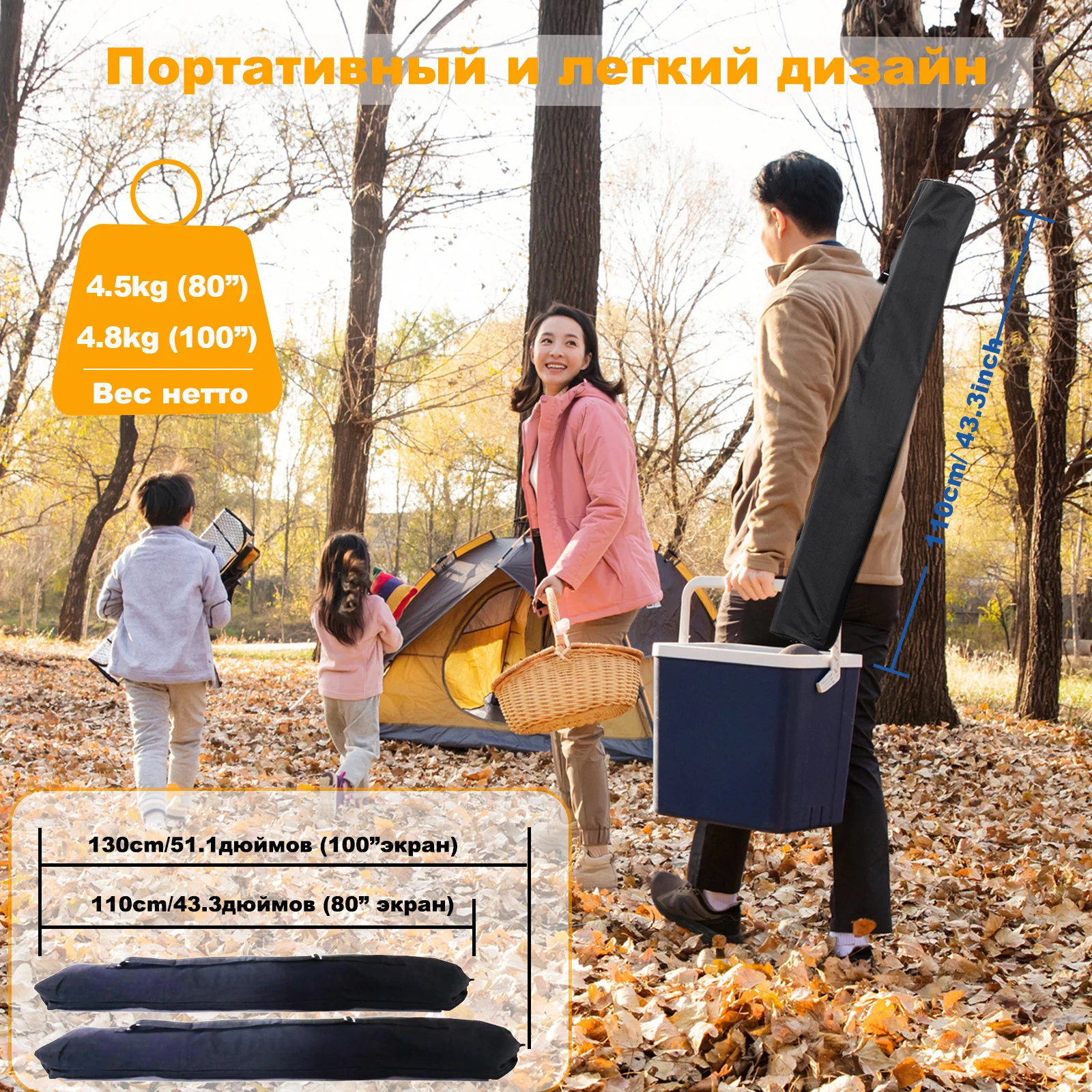 Сумка для переноски хранит все части экрана проектора в ней, вам не нужно тратить больше времени, вы можете легко собрать или разобрать этот треножный экран проектора всего за несколько шагов.