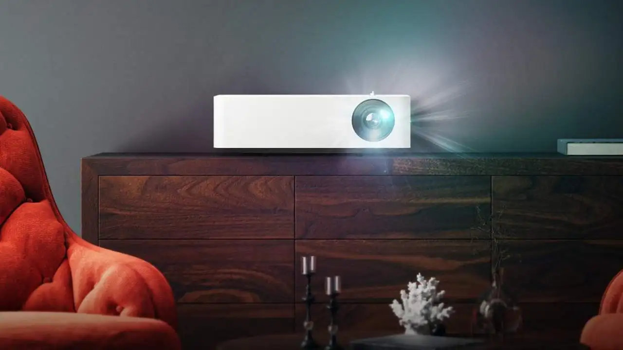 Портативный проектор LG CineBeam с яркостью 1000 ANSI люмен создает четкое изображение внутри и снаружи, ночью и ранним вечером.