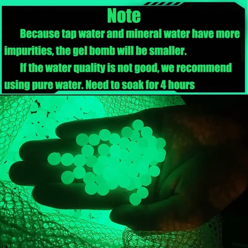 3.【 Светящаяся в темноте вода beads】помещая их под крытый светильник ing или любой светильник какое-то время, необходимое время и яркость патронов зависит от интенсивности светильник, мы рекомендуем как можно ближе к источнику светильник для полного поглощения энергии, после гелевых патронов для замачивания геля чистой водой. Чем дольше светильник будет светиться.