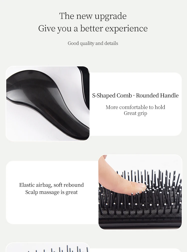 2. Расческа для расчесывания отличается хорошей эластичностью и идеально подходит для кожи головы. Почти каждый зуб может полностью контактировать с кожей головы при расчесывании, эффективно массировать голову и способствовать кровообращению.
