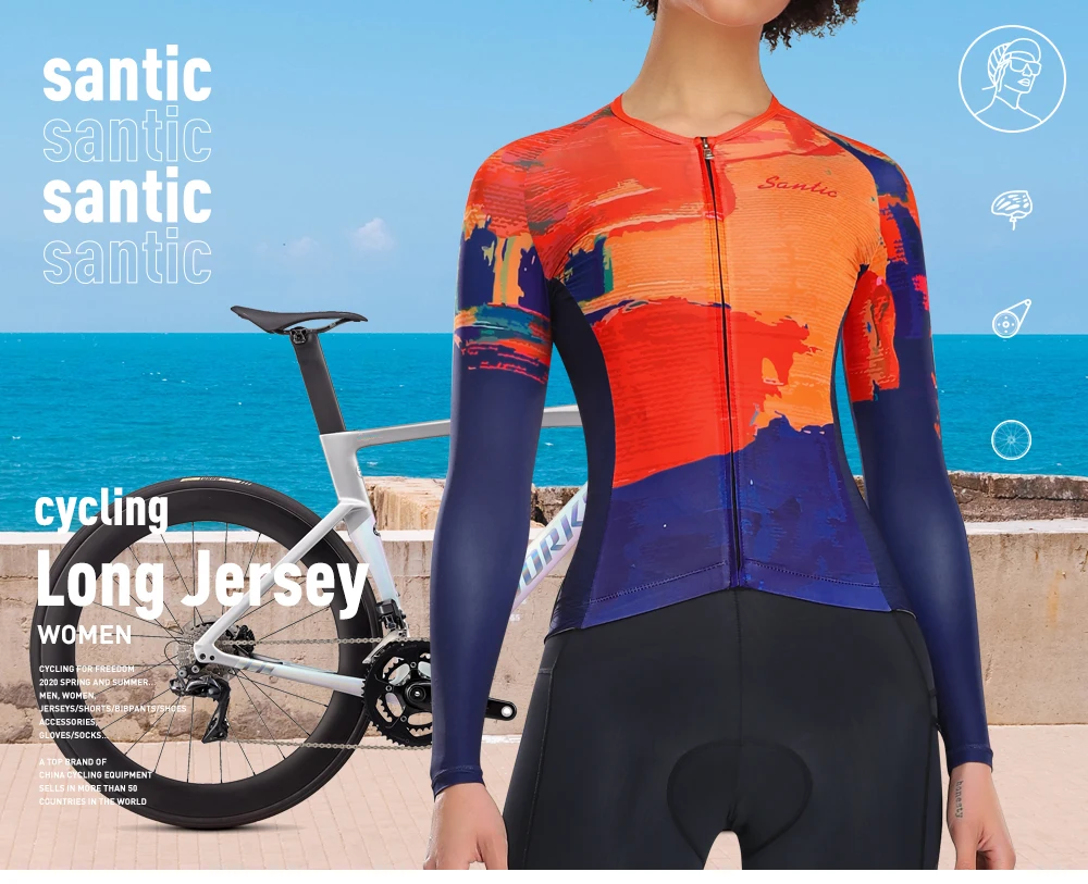 Santic Женская одежда для велоспорта, куртка с длинным рукавом, летняя, для улицы, для езды на велосипеде, MTB, для езды на велосипеде, солнцезащитная, дышащая, топ, Азиатский размер