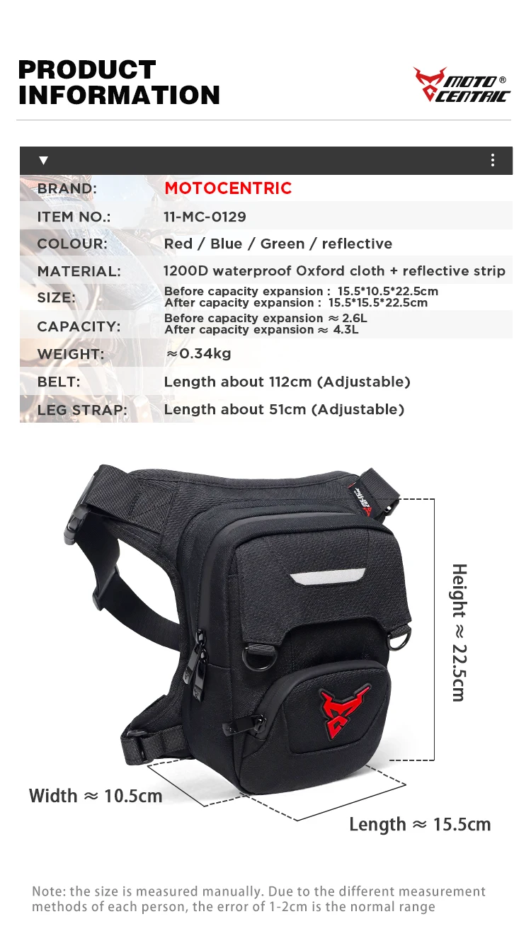 Small bag but high capacity,usefull leg motorcycle bag.