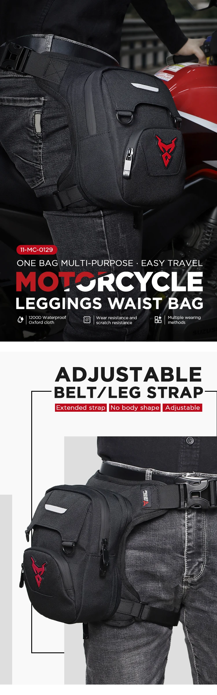 Durable Waterproof Oxford Drop Leg Bag: This leg bag is made of water-resistant Oxford, top-quality zippers and durable strap clip.
