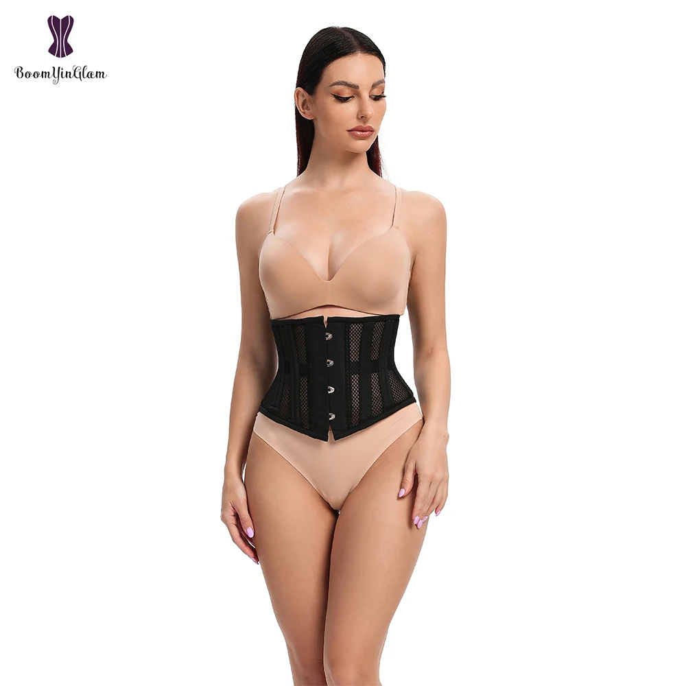 Women's Double Steel Boned Underbust Corset Mesh Breathable Waist Trainer Control Sexy Bustier
