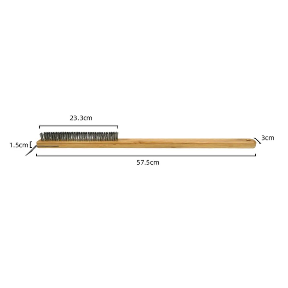 Материал: ручка изготовлена из бука с достаточной твердостью для поддержки головки стальных щеток и скребка для очистки. Щетка из медной проволоки может выдерживать высокие температуры любой печи для пиццы и камня для пиццы.