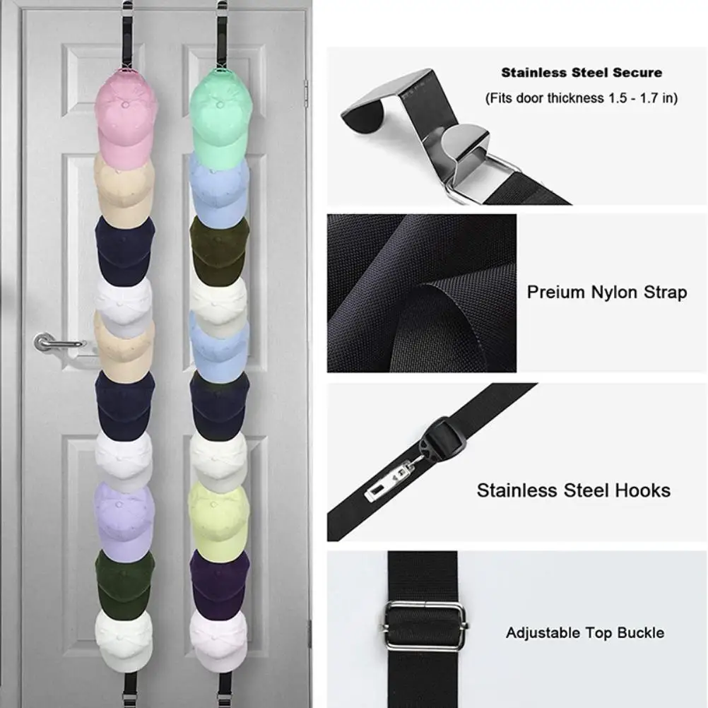 1. Вмещает до 20 шляп. Поставляется с 1 шнуром и 20 зажимами. Просто прикрепите шляпу к зажиму из нержавеющей стали и прикрепите держатель шляпы к гардеробу или дверному крюку. Держатель шляпы надежно удерживает вашу шляпу, что означает, что она не отпадет, когда вы найдете шляпу или одежду в вашем шкафу.