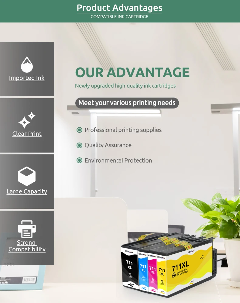 Main for:Europe (printer version)Ink capacity:Bk 80ml, Color 30mlColor: Black Cyan Magenta YellowCompatible Printer model:For HP DesignJet T120 24-in PrinterFor HP DesignJet T520 24-in PrinterFor HP DesignJet T520 36-in Printer1SET