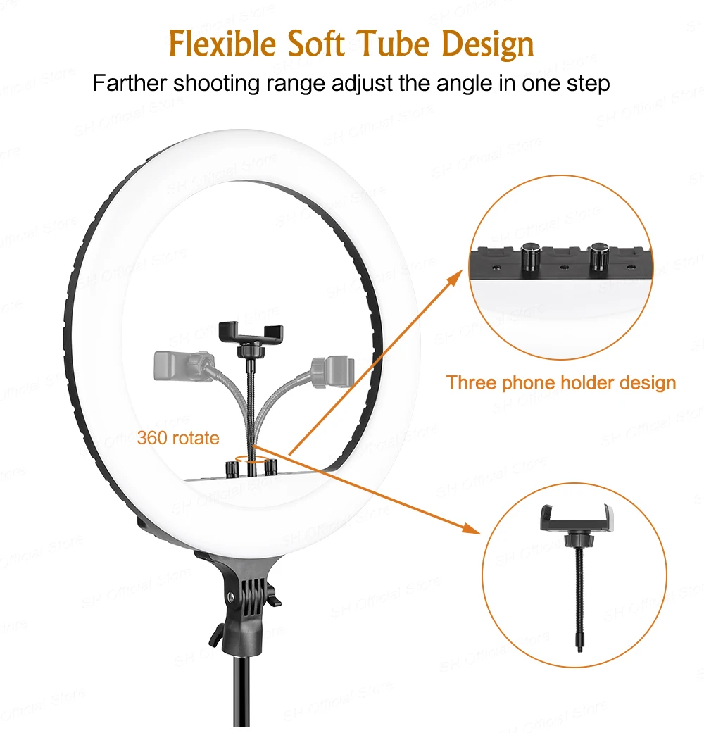 SH 18 дюймовый светодиодный светильник с кольцом, набор с Штатив для осветительного прибора, подставка с регулируемой яркостью 2700K-5700K для Youtube Tik Tok, видеосъемка