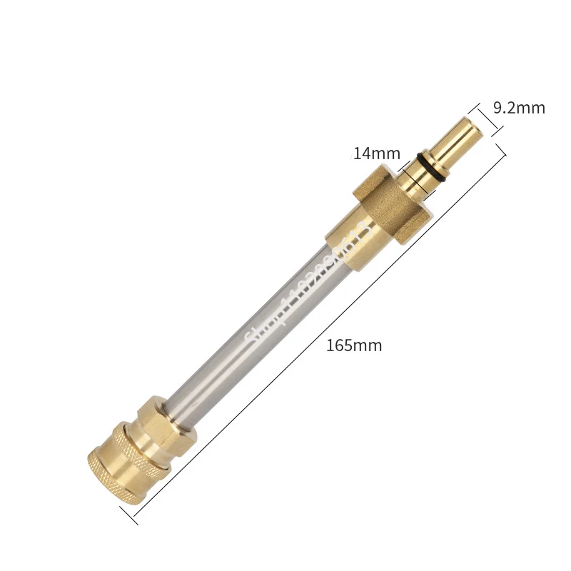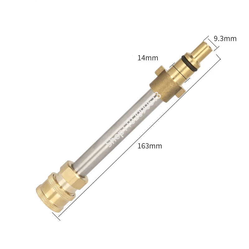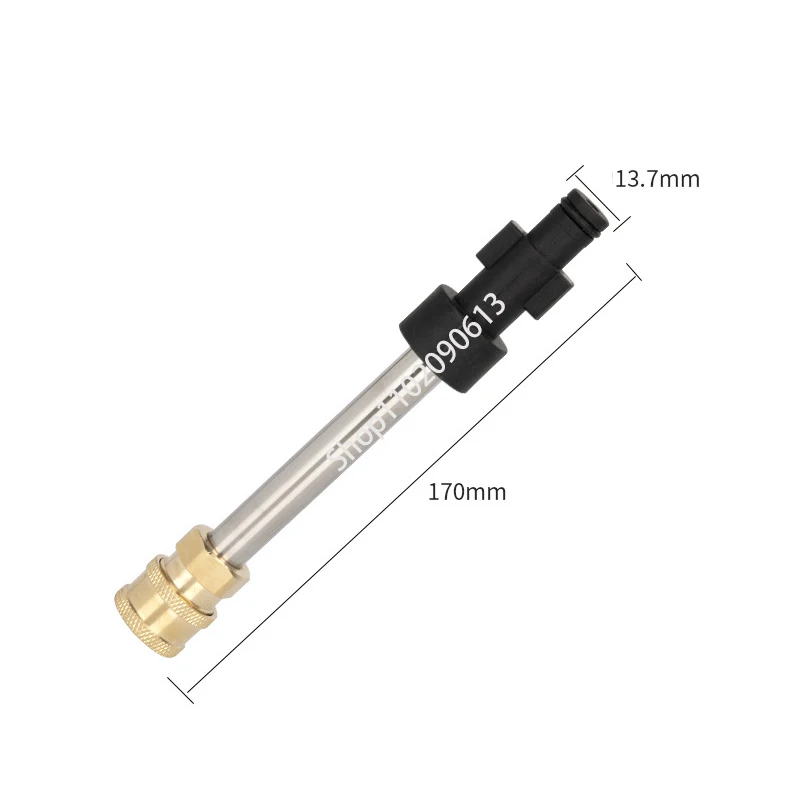 Он состоит из 1/4 женского быстрого соединения и адаптера с 10 см стержнем для большинства видов стиральной машины высокого давления.