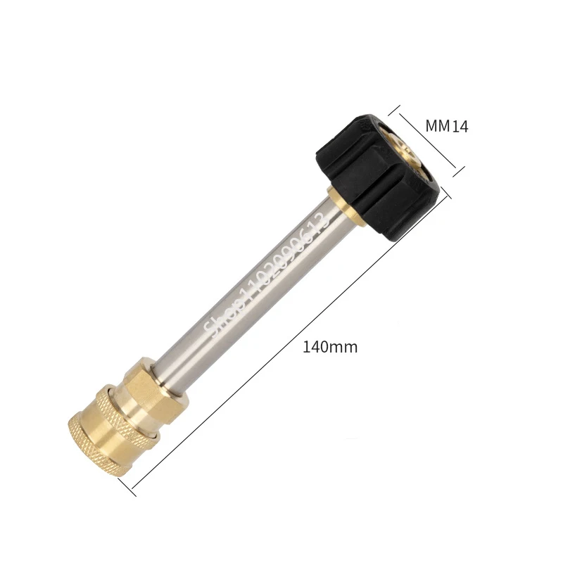 Он может подключить большинство видов машин для мойки высокого давления к видам автомоек с 1/4 быстрой вилкой, такой как пенопластовый горшок, многоугловое распылительное сопло, щетка для мойки высокого давления и так далее.