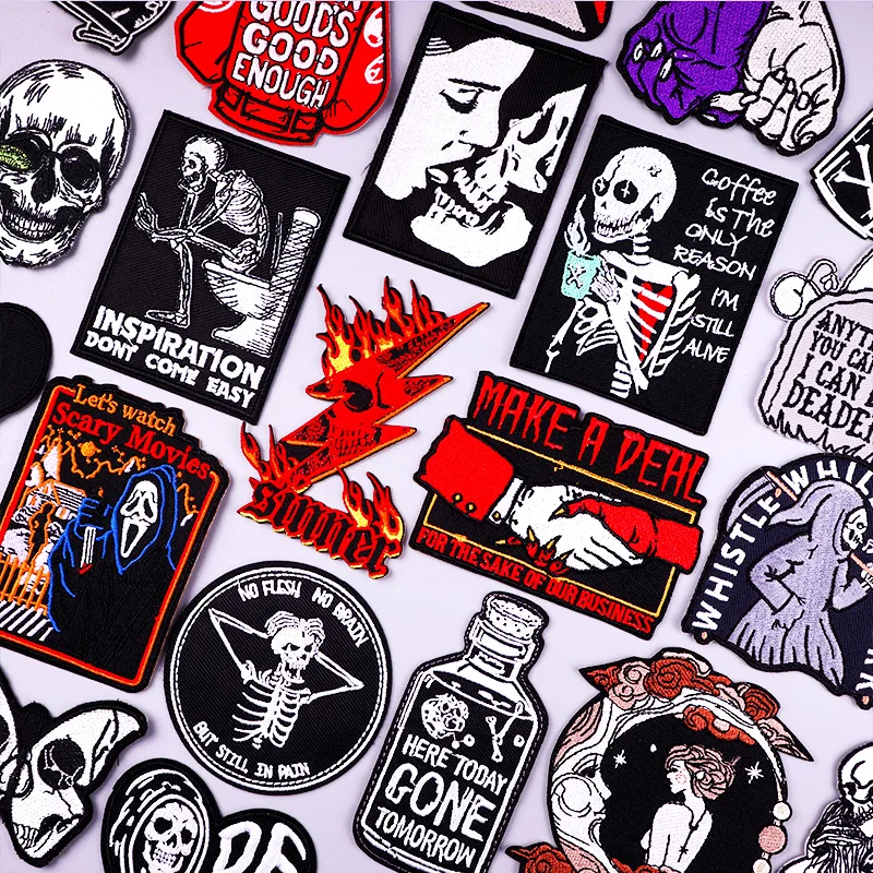 Нашивки с молниями в виде черепа на одежде, значки в виде скелета, нашивки в полоску, сделай сам, железные нашивки на одежде, наклейки с аппликацией
