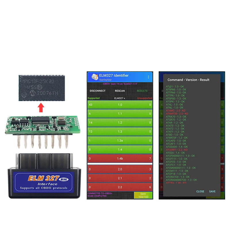 Вопрос: ваш ELM327 1,5 построен на оригинальном микрочипе PIC18F25K80? Какова частота кристаллического осциллятора, 4 МГц или 16 МГц? Поддерживает ли он команды ATAL и ATPPS?