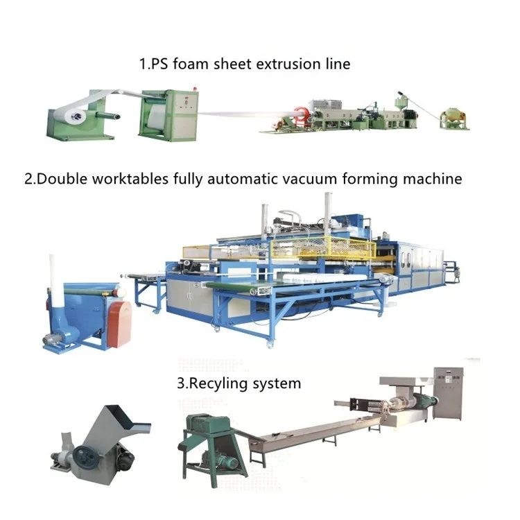 Двойные рабочие столы полностью автоматическая вакуумная формовочная машина интегрирует формирование, резка, робот рука захвата в то же время, также пенопластовые продукты могут выйти autimatically. Это вакуумное формование, а также прессование и синтезированное формирование. Может использоваться для обработки всех видов пластиковых листов. Он принимает контроллер PLC и сенсорный экран для управления рабочим программистом. Он прост в эксплуатации и отличается высокой степенью автоматизации.