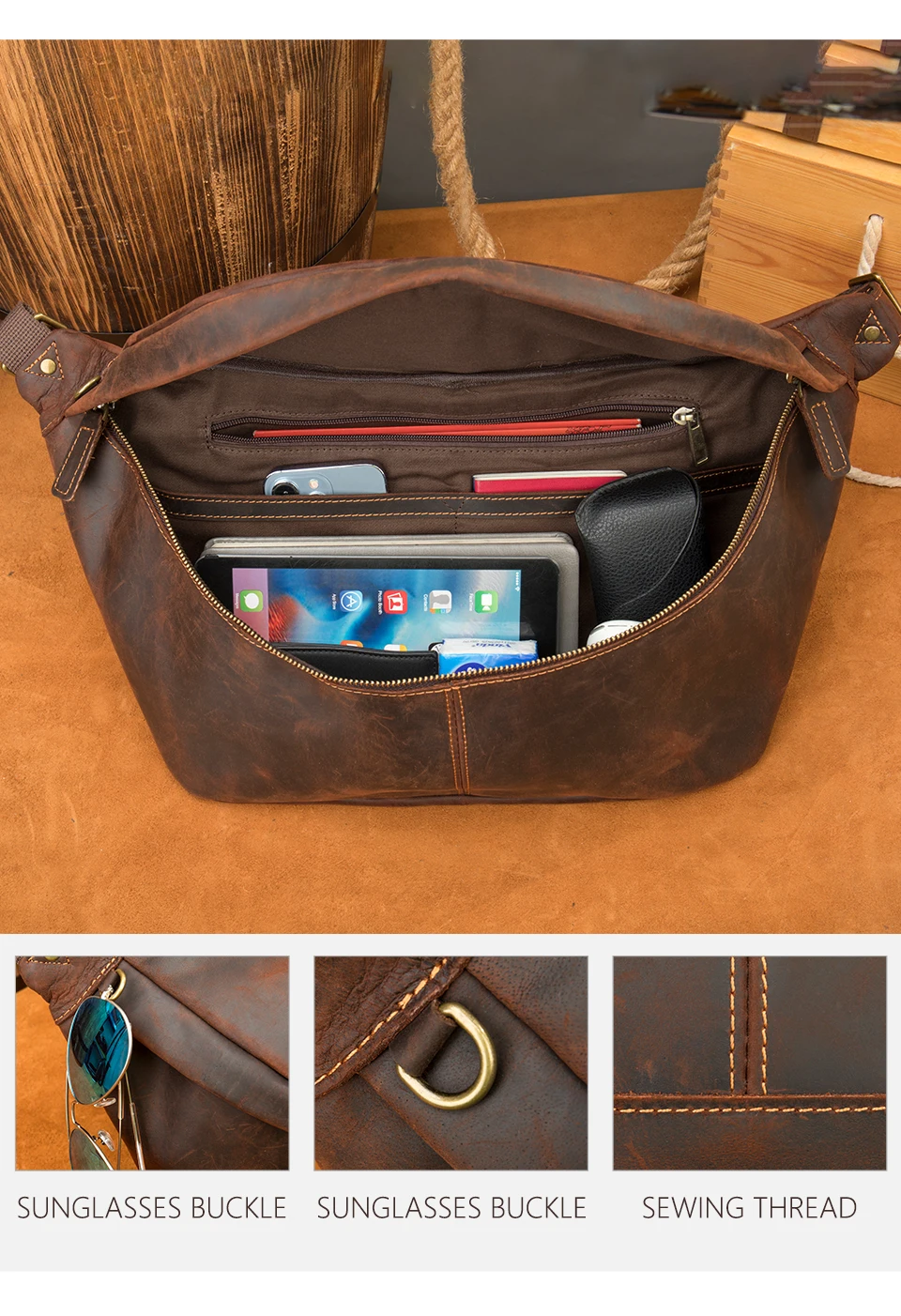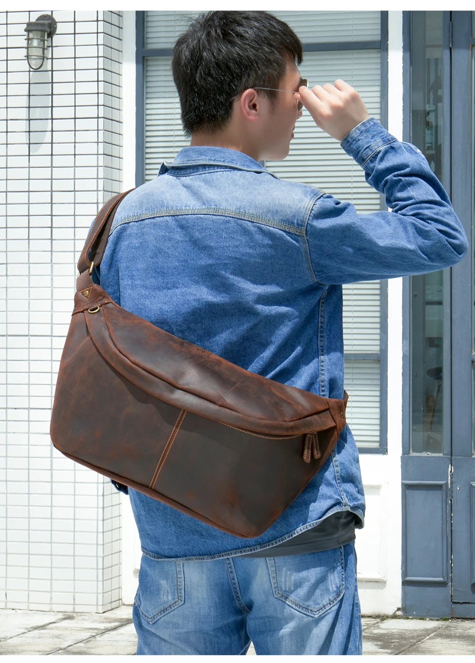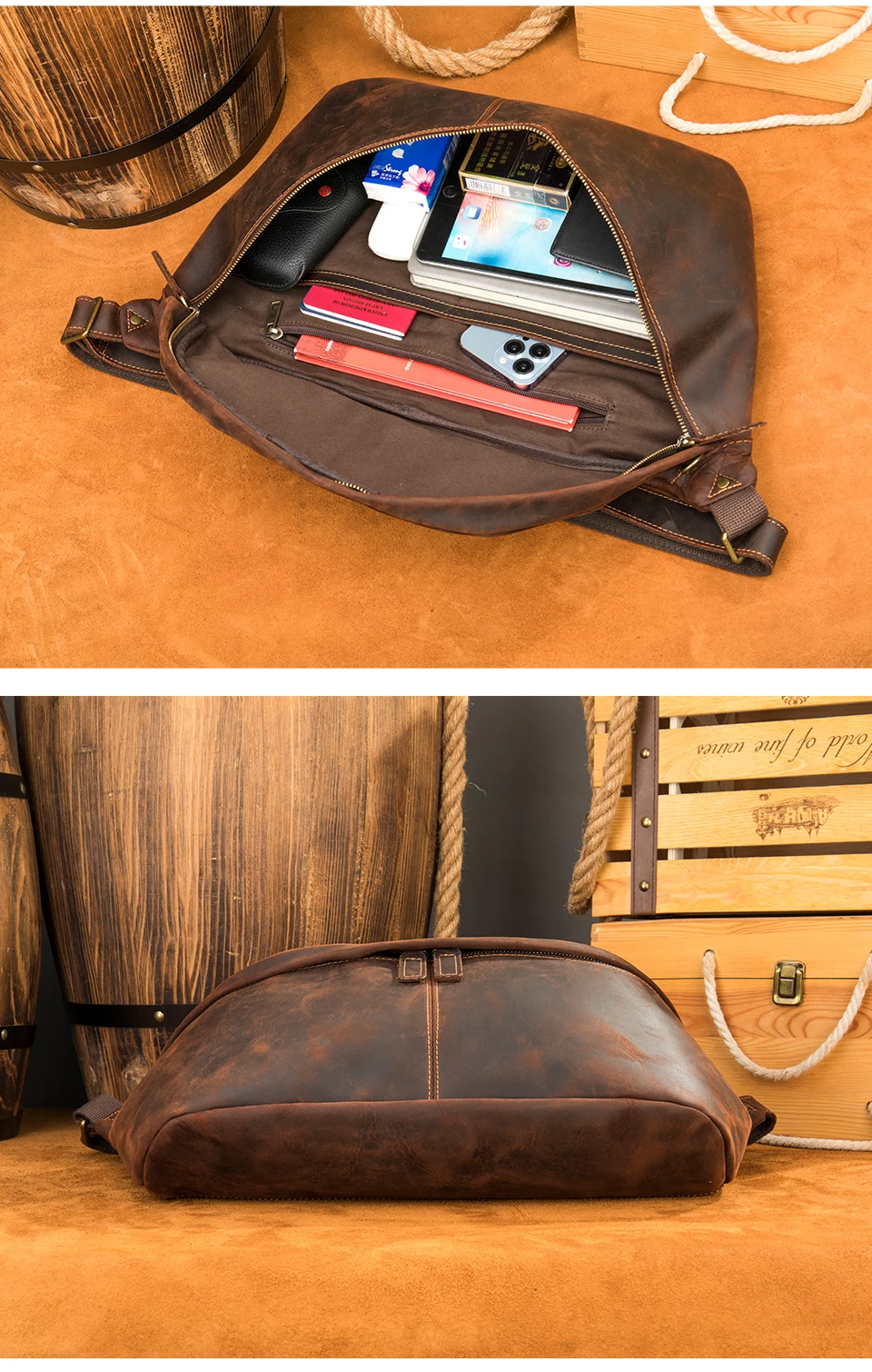 2022 New Fashion Men's Genuine Leather Messenger Bag Crossbody Shoulder Bags Vintage Cow Leather Male Casual Sling Pack Satchel