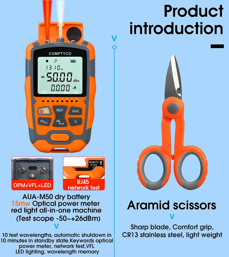 Набор для холодного сращивания оптического волокна, нож для резки 15 МВт, четыре в одном, оптический измеритель мощности, красный светильник, все в одном, машина AUA-M50