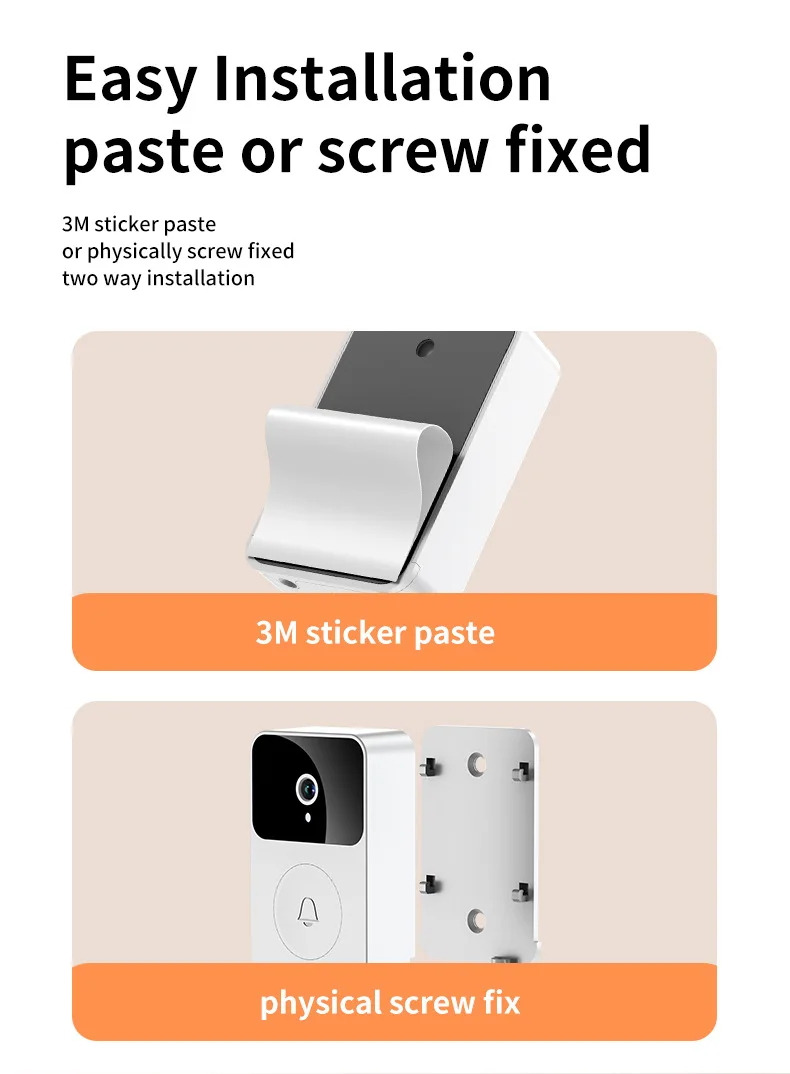 【Облачное хранилище и простая установка 】 наш домашний дверной звонок с камерой поддерживает зашифрованное Облачное хранилище, 3 дня подвижного хранения предоставляются бесплатно, вы можете проверить записи дверного звонка и фотографии в любое время. Следуя руководству пользователя, вы можете быстро установить беспроводную камеру видео-звонка в течение 5 минут без использования каких-либо сложных инструментов, просто установите дверной звонок с помощью предоставленных винтов или 3 м двойной боковой ленты (в комплекте).