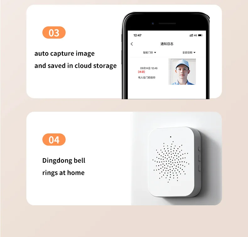 【Мгновенное уведомление и ИК Ночное Видение This этот дверной звонок беспроводной с камерой будет автоматически делать фотографии и push-уведомления на ваш мобильный телефон, когда кто-то звонит в дверной звонок, вы можете общаться с посетителями через видеозвонки или голосовые вызовы в приложении. Дверной звонок для камеры передней двери позволяет видеть более четкий снаружи двери в вечернее время или в других ситуациях, когда светильник Низкий, благодаря 850nm IR светодиодный светильник s, защищающий вашу семью днем и ночью.