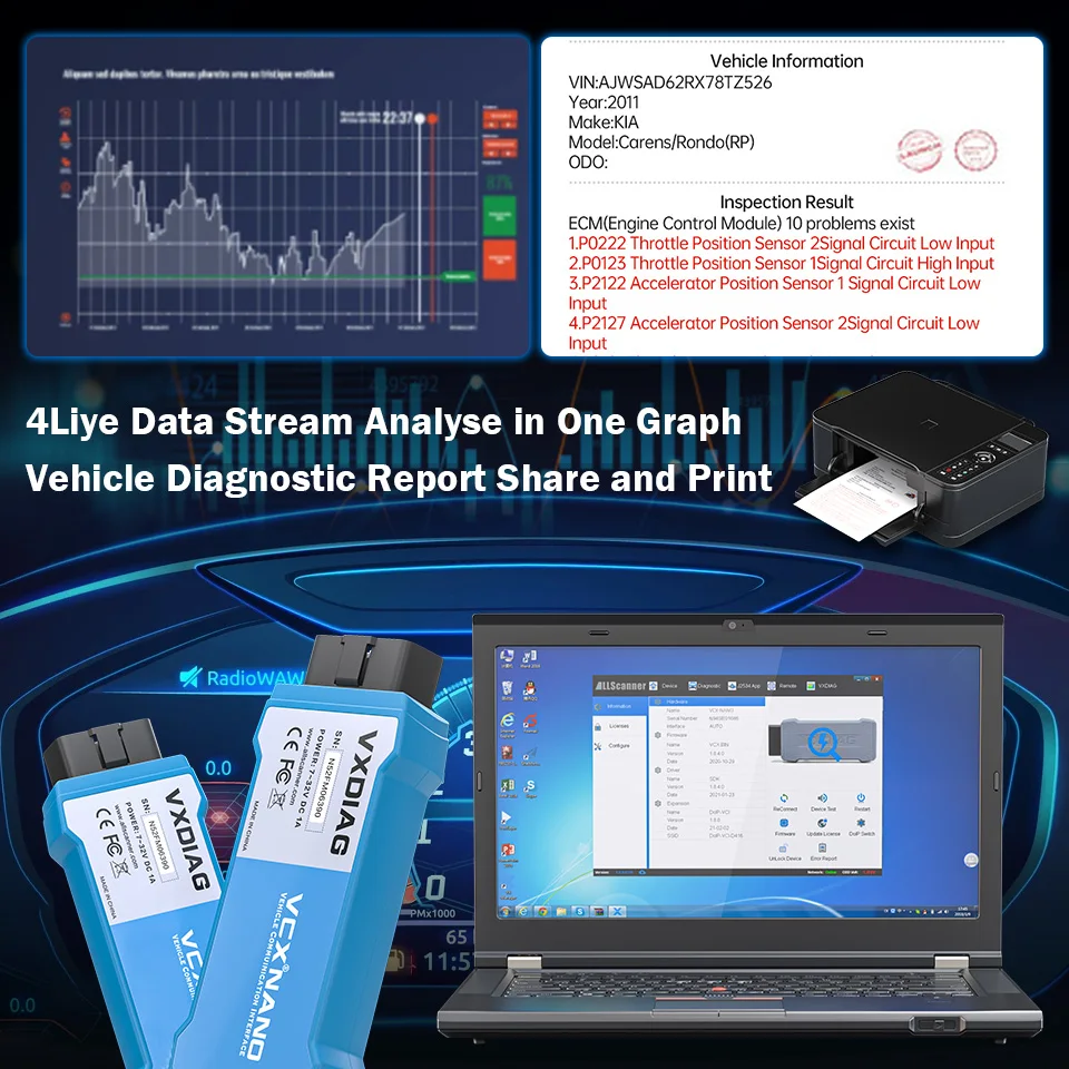 VXDIAG показывает вам данные датчиков в реальном времени и предоставляет графику данных для интуитивной диагностики и мониторинга производительности вашего транспортного средства, помогает клиентам лучше анализировать ненормальный параметр.