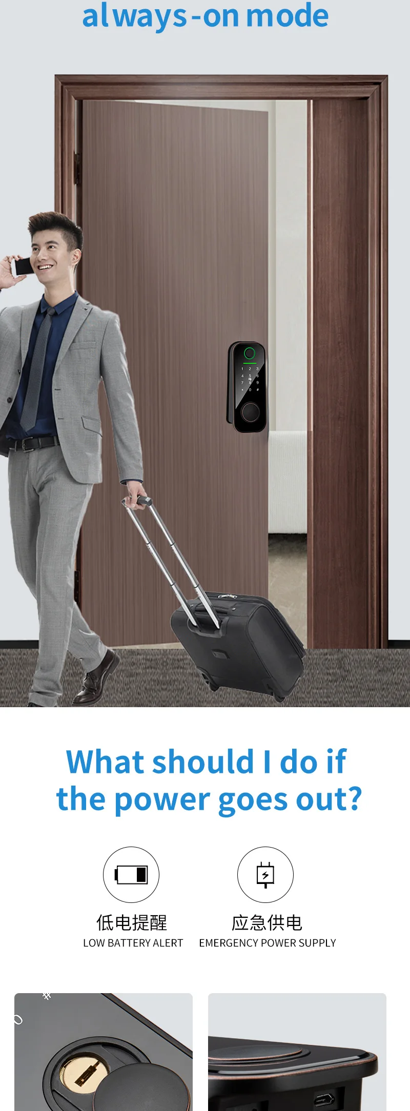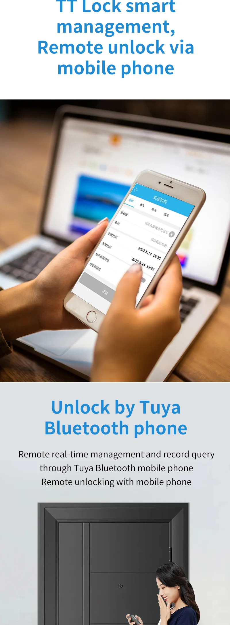 4) мобильный телефон может быть разблокирован удаленно, а посетители также могут отправить временный пароль разблокировки через приложение