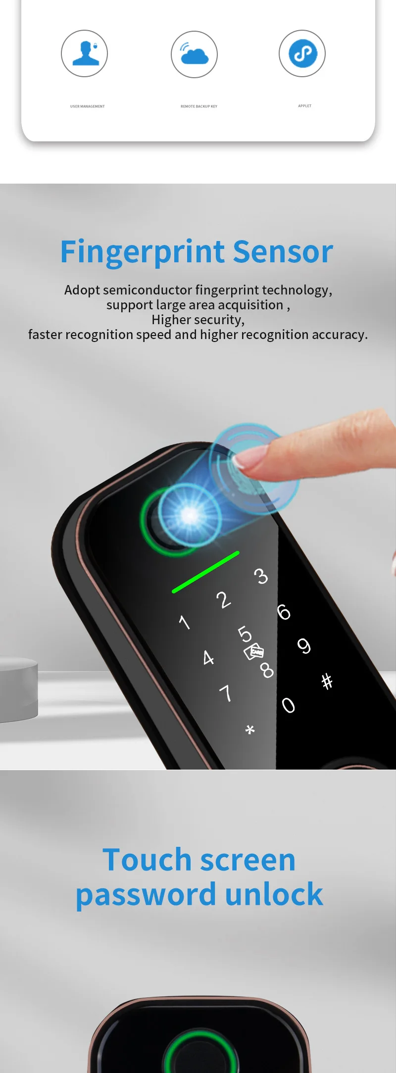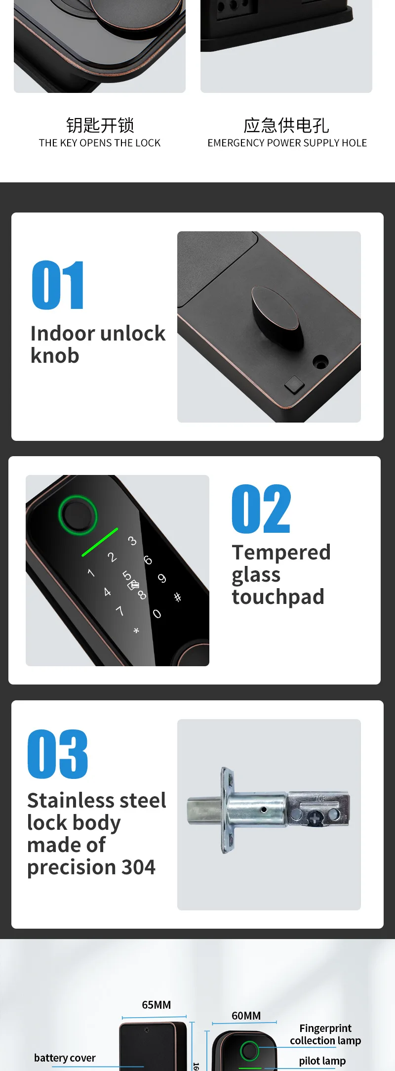 3) Метод разблокировки: Bluetooth/отпечатков пальцев/IC карты/Пароль/ключ